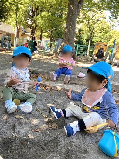 すみれ組の子ども達が公園で遊んでいると、必ず他のクラスのお友達が声をかけてくれます^^