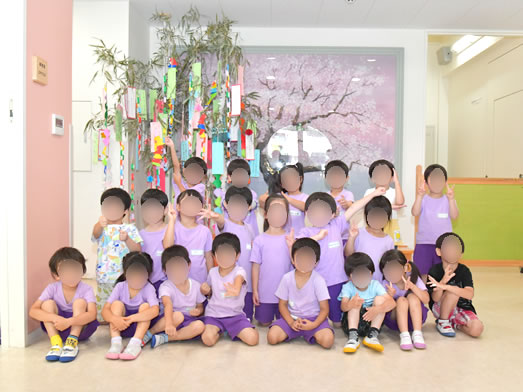 7月には、毎年恒例の笹が玄関に飾られ、短冊に一人一人の願い事を飾りました^^