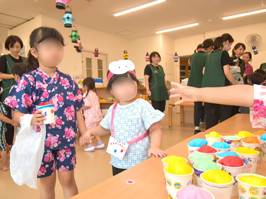 夏のお楽しみ会では、4・5歳児クラスのお友達がお店屋さんを開いてくれて大盛況!!