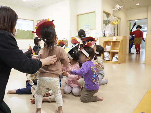 次に鬼が向かったのは3歳児ひまわり組のお部屋。
