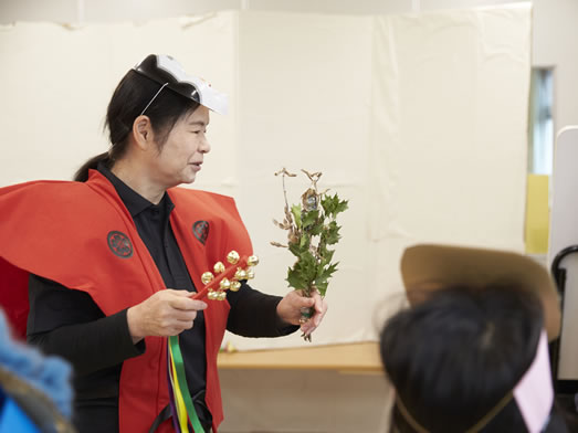 福の神が持っていた【ひいらぎいわし】にも興味津々の子ども達。
