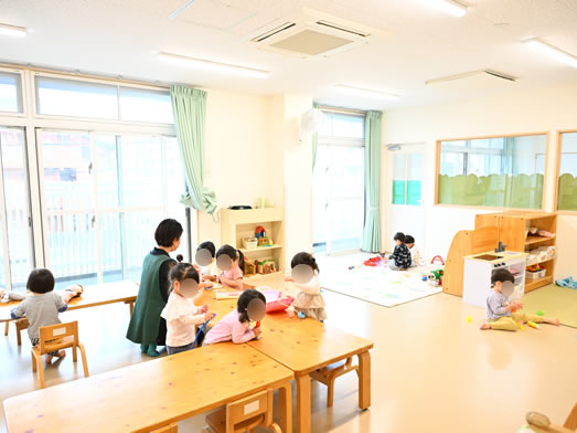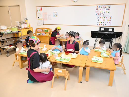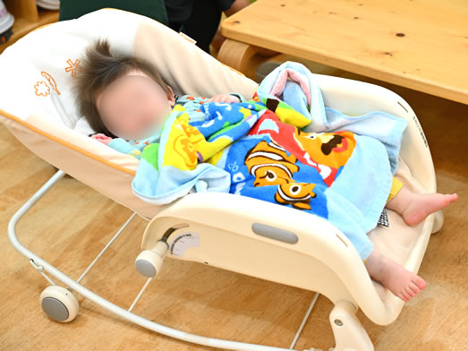 すみれ組では月齢に合わせて睡眠や食事形態をかえ、一人一人に合った保育を行っています。