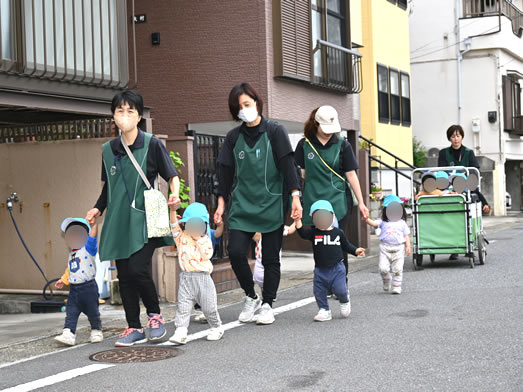 保育者と手をつないで上手に歩けるようになりましたよ^^