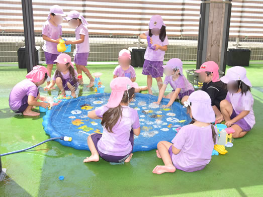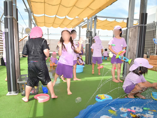 夏のお楽しみ会が終わった後、屋上で水遊びを楽しみました♪