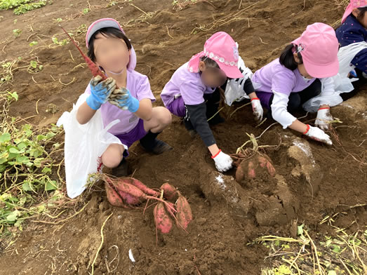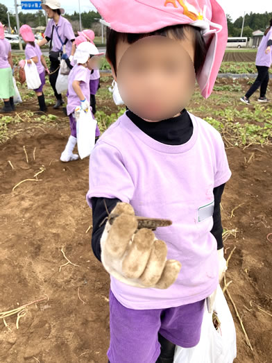 土の中からお芋が見えると「あった!!先生芋が出てきたよー!!」とみんな大興奮♪