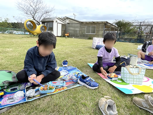 芋掘りを楽しんだ後は、子ども広場でお弁当タイム~♪