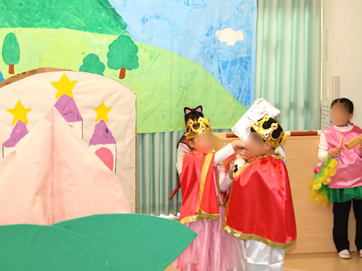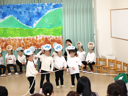 4歳児クラスになって一人ずつ台詞があったり、劇中に子ども同士で助け合ったりと去年からの成長を感じていただけたのではないでしょうか★