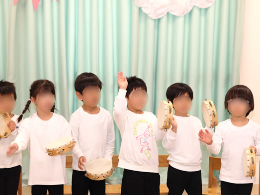 タンバリンやカスタネット、鈴を鳴らしながら元気いっぱいな歌声を聴かせてくれました♪